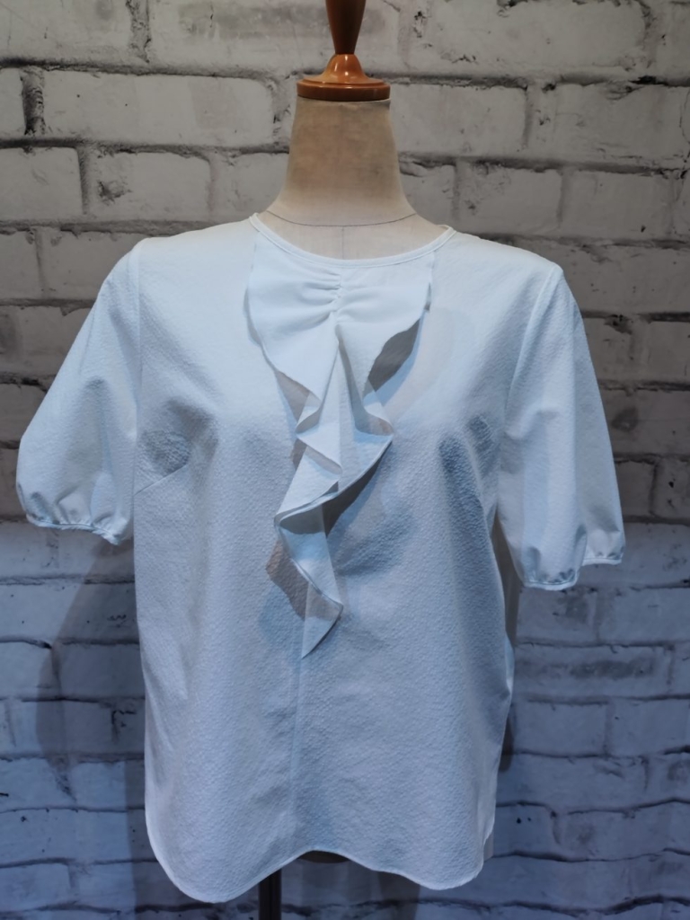 夏に大活躍 フリルサッカーブラウスとサッカーフレアスカート(洗える・日本製・セットアップ可能)