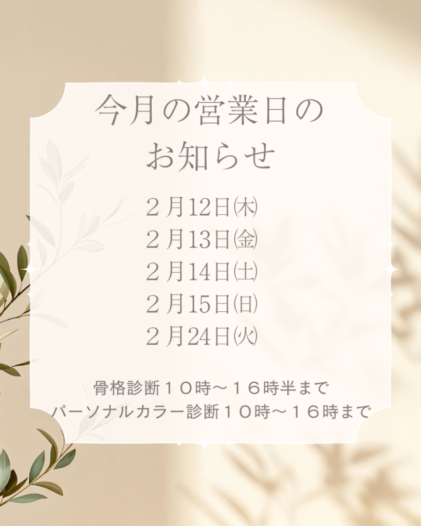 今月は外部展示会出展の為、営業日が少なく申し訳ございません。時間については夕方でも対応可能な日がございます。お気軽に電話やインスタグラムDM又はラインでお問い合わせください。